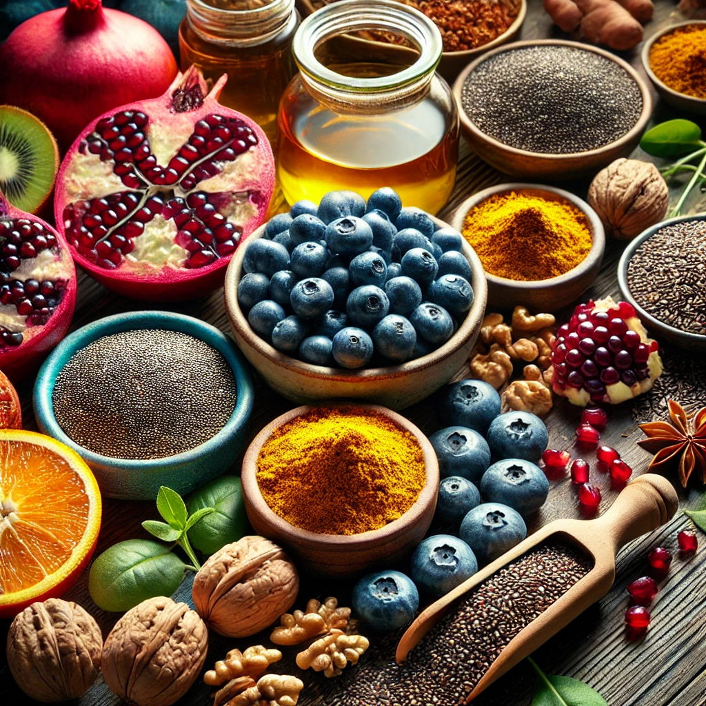 강황, 호두, 석류, 퀴노아와 같은 슈퍼푸드는 면역력을 높이고, 두뇌 활동을 촉진하며, 피부 건강을 돕습니다. 특히 강황의 커큐민 성분은 강력한 항염증 효과를 가지고 있어 건강 유지에 중요한 역할을 합니다. 또한 호두는 뇌 건강에 도움을 주고, 석류는 항산화 효과로 피부를 보호합니다.